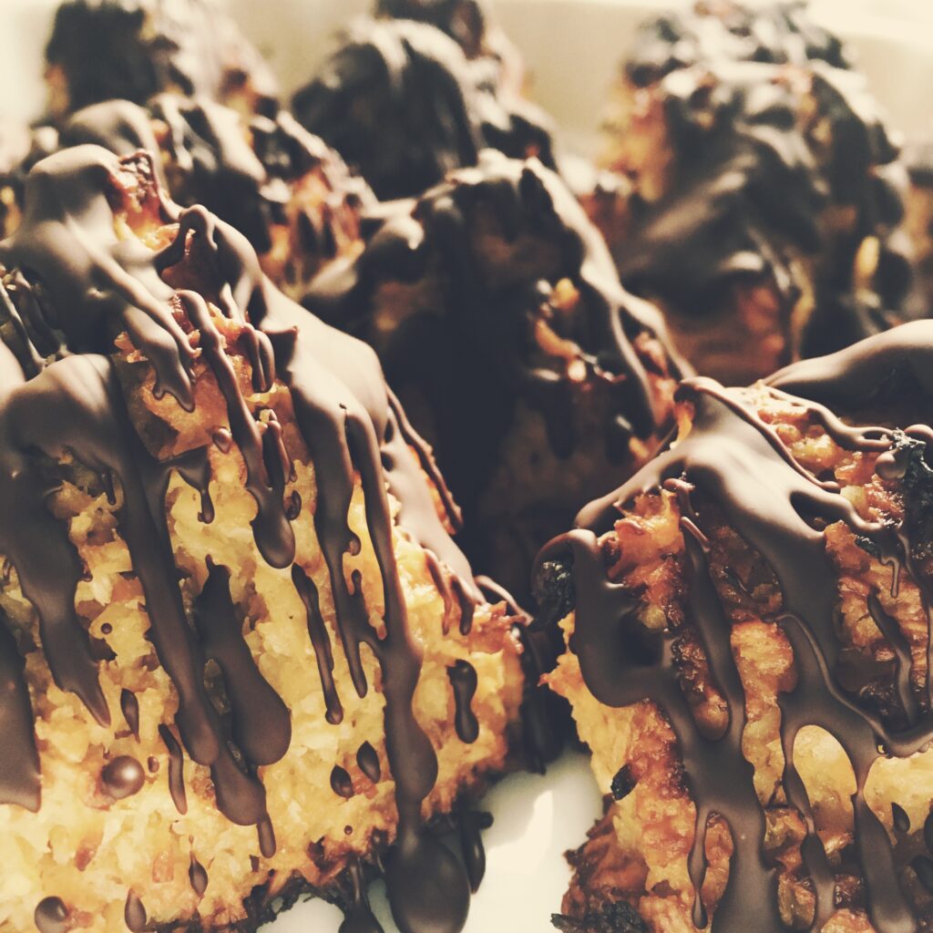 Jeg har igen udvidet min comfortzone og eksperimenteret – denne gang med at lave kokosmakroner uden bunker af sukker. Bare fordi. Fordi jeg havde lyst til at se, om det igen kunne lykkes at lave noget, så også veganere og glutenallergikere kan deltage i desserten. Og det kan det. Efter første fejlslagne forsøg med lidt…