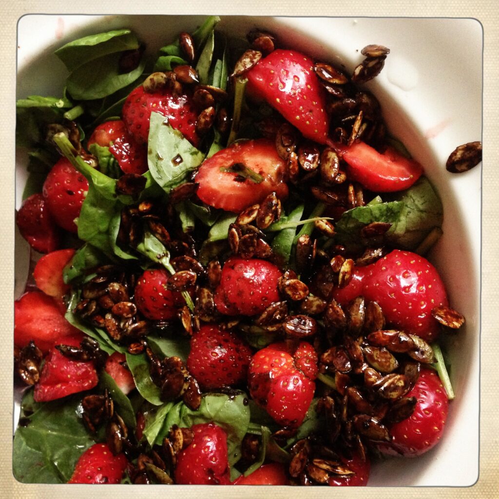 Min Mutti ringede og skulle høre, hvad hun skulle stille op med dagens jordbær og den håndfuld løse salater, hun havde høstet på torvet på Ingerslev Boulevard. Jeg sendte hende i køkkenet med min seneste jordbærballade, som endte på bordet sidste uge, da Mette kom forbi til oldschool mørbrad efter arbejde.