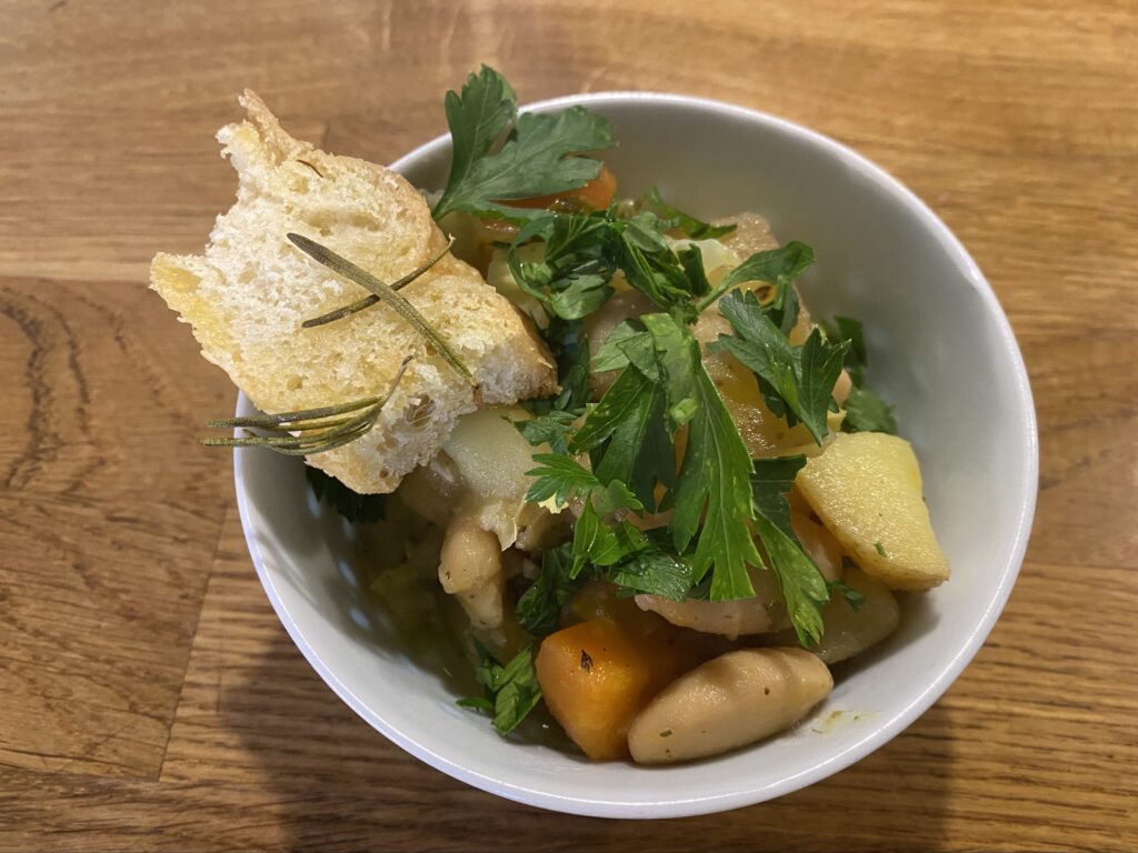 Jeg så ideen med savoy og kartoffel og hvide bønner hos Crowded kitchen, og så har jeg ellers leget videre derfra. Som altid ender jeg med mere fyld end suppe. Denne her er virkelig dejlig og så god, at jeg endda kan finde på at lave den til mig selv, og ikke bare når der…